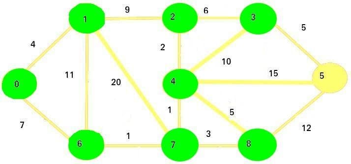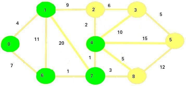 - Since - 4 + 11 > 7, the cost of vertex 6 will remain 7