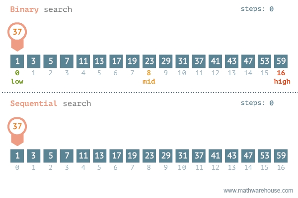 print([linear_search(a, a[b]), binary_search(a, a[b])])