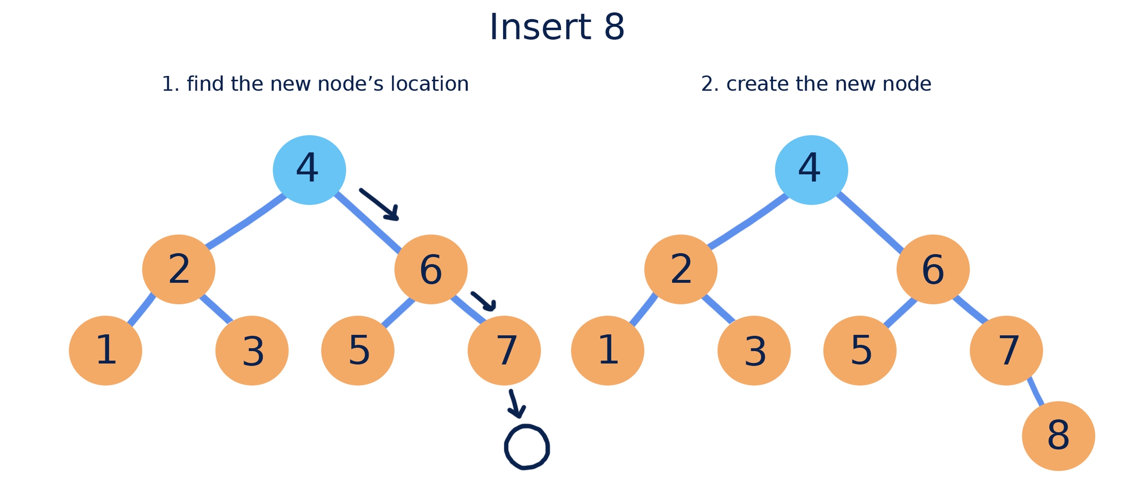 New nodes in a binary search tree are always added at a leaf position. Performing a search can easily find the position for a new node.