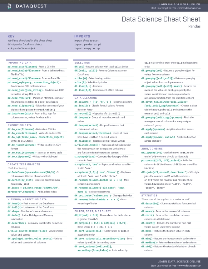 You can find a best-of article about the 7 best Pandas Cheat Sheets here.